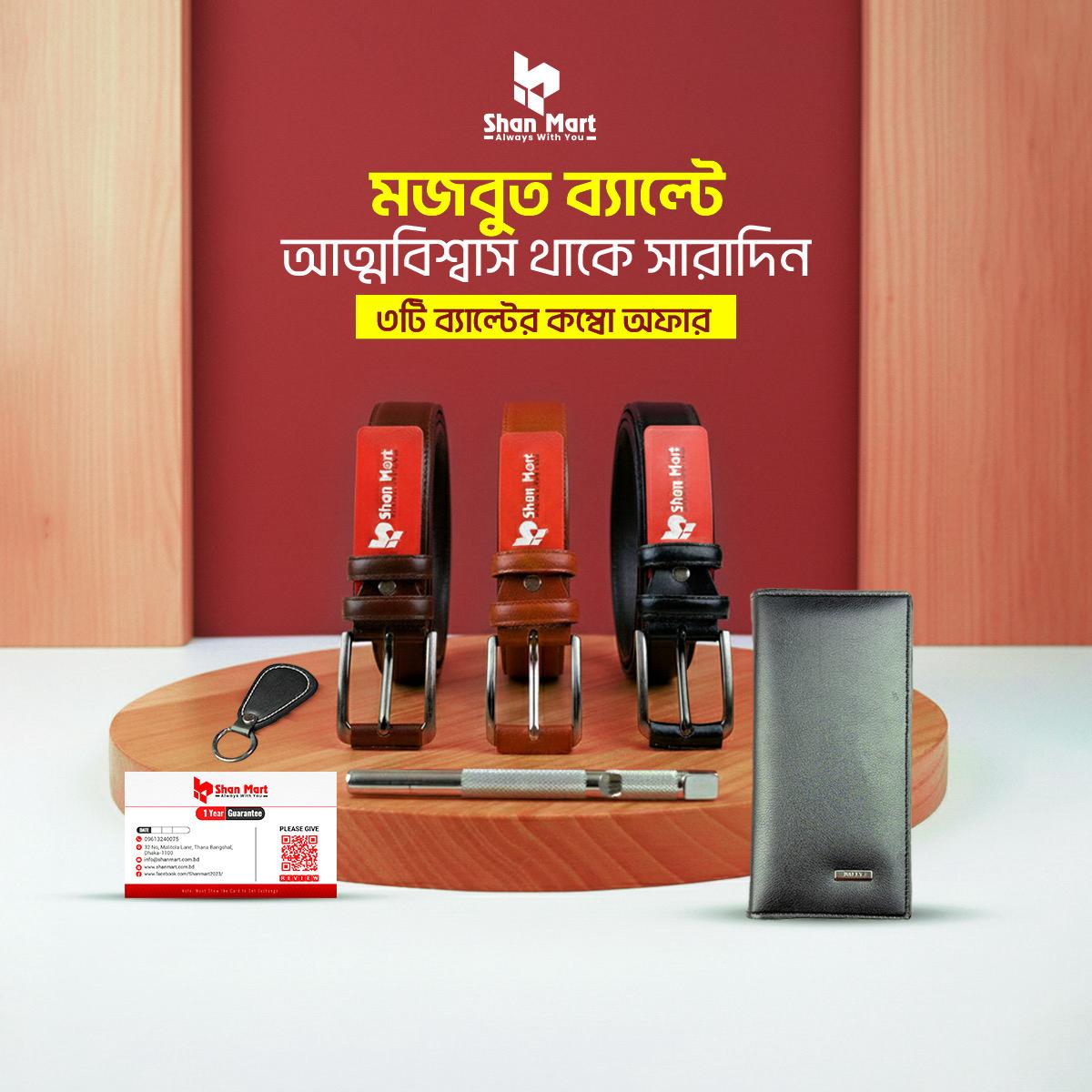 ৩ পিস প্রিমিয়াম বেল্ট কম্বো + ফ্রি ওয়ালেট ও এক্সট্রা গিফট