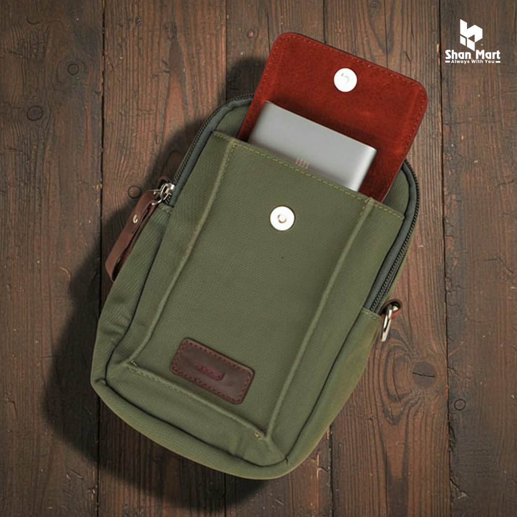 ওয়ালেট, মোবাইল, পাওয়ার ব্যাংক, ছোট নোটবুক বা সানগ্লাস রাখার জন্য যথেষ্ট জায়গা।